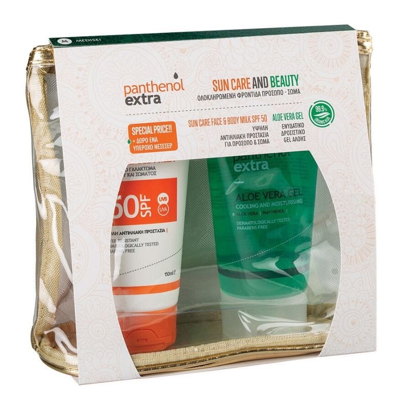 Medisei Promo Sun Care & Beauty Panthenol Extra Sun Care Face & Body Milk Spf50, 150ml & Aloe Vera Gel 150ml & Δώρο Νεσεσέρ