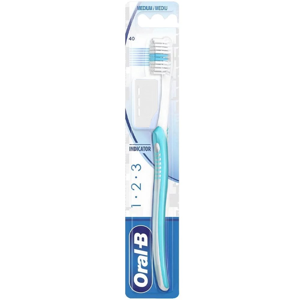 Oral-B 123 Indicator Medium Toothbrush 35mm Χειροκίνητη Οδοντόβουρτσα με Μέτριες Ίνες 1 Τεμάχιο - Μπλε / Πράσινο