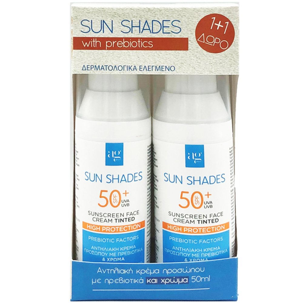 Ag Pharm Πακέτο Προσφοράς Sun Shades Sunsreen Face Cream Tinted Spf50+ Αντηλιακή Κρέμα Προσώπου Πολύ Υψηλής Προστασίας με Πρεβιοτικά & Χρώμα 2x50ml