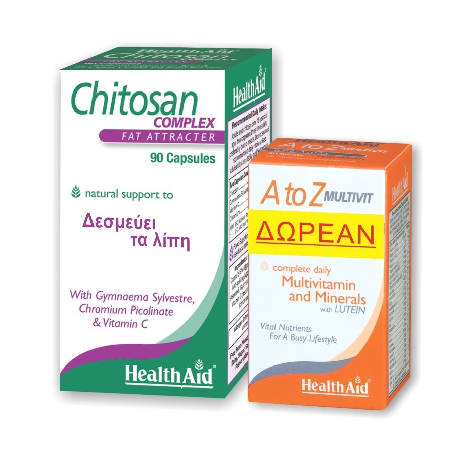 Health Aid Πακέτο Προσφοράς Chitosan Συμπλήρωμα Διατροφής για τη Δέσμευση των Λιπών 90tabs & Δώρο A to Z Multivitamin 30tabs