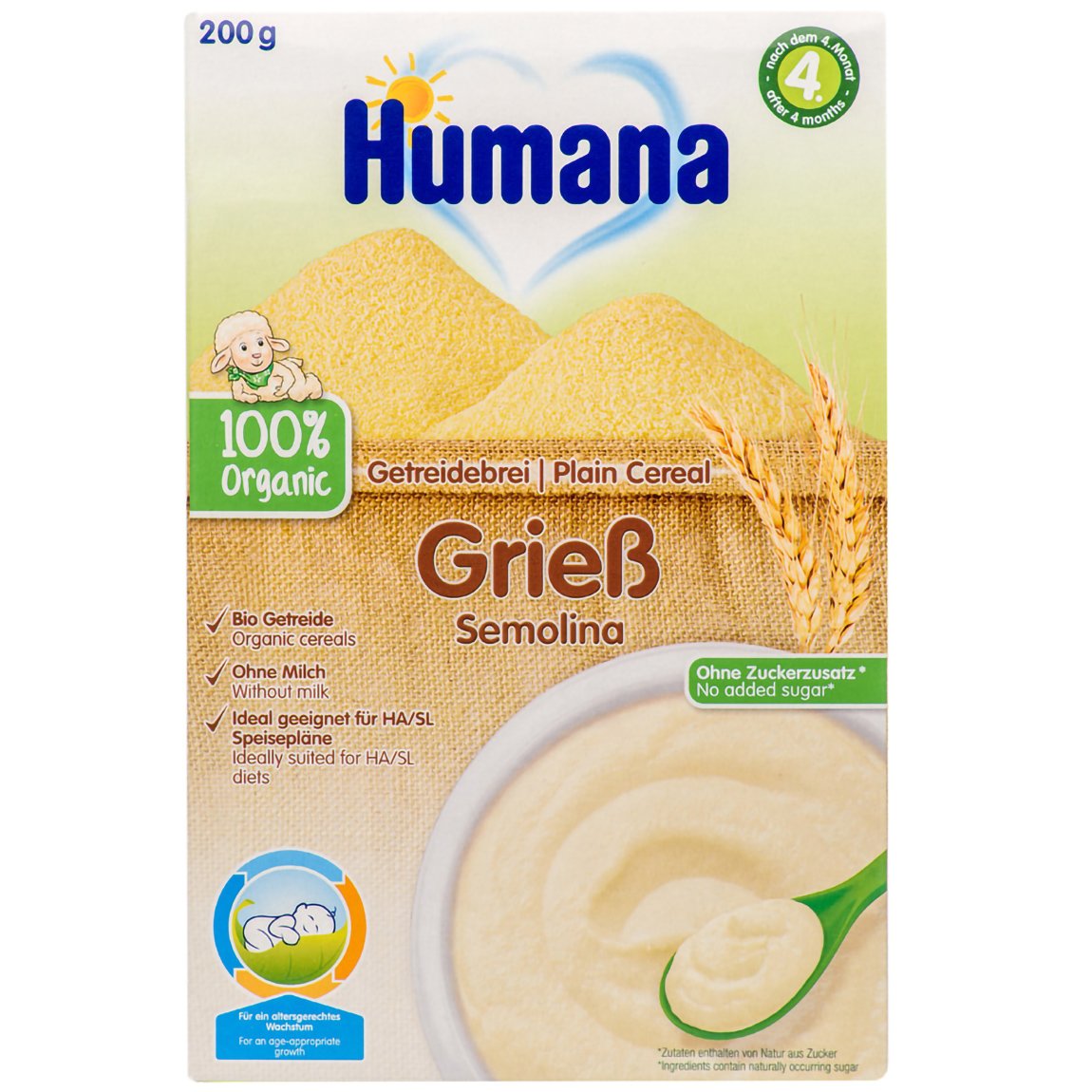 Humana Βιολογική Κρέμα με Σιμιγδάλι Χωρίς Γάλα Μετά τον 4ο Μήνα 200g