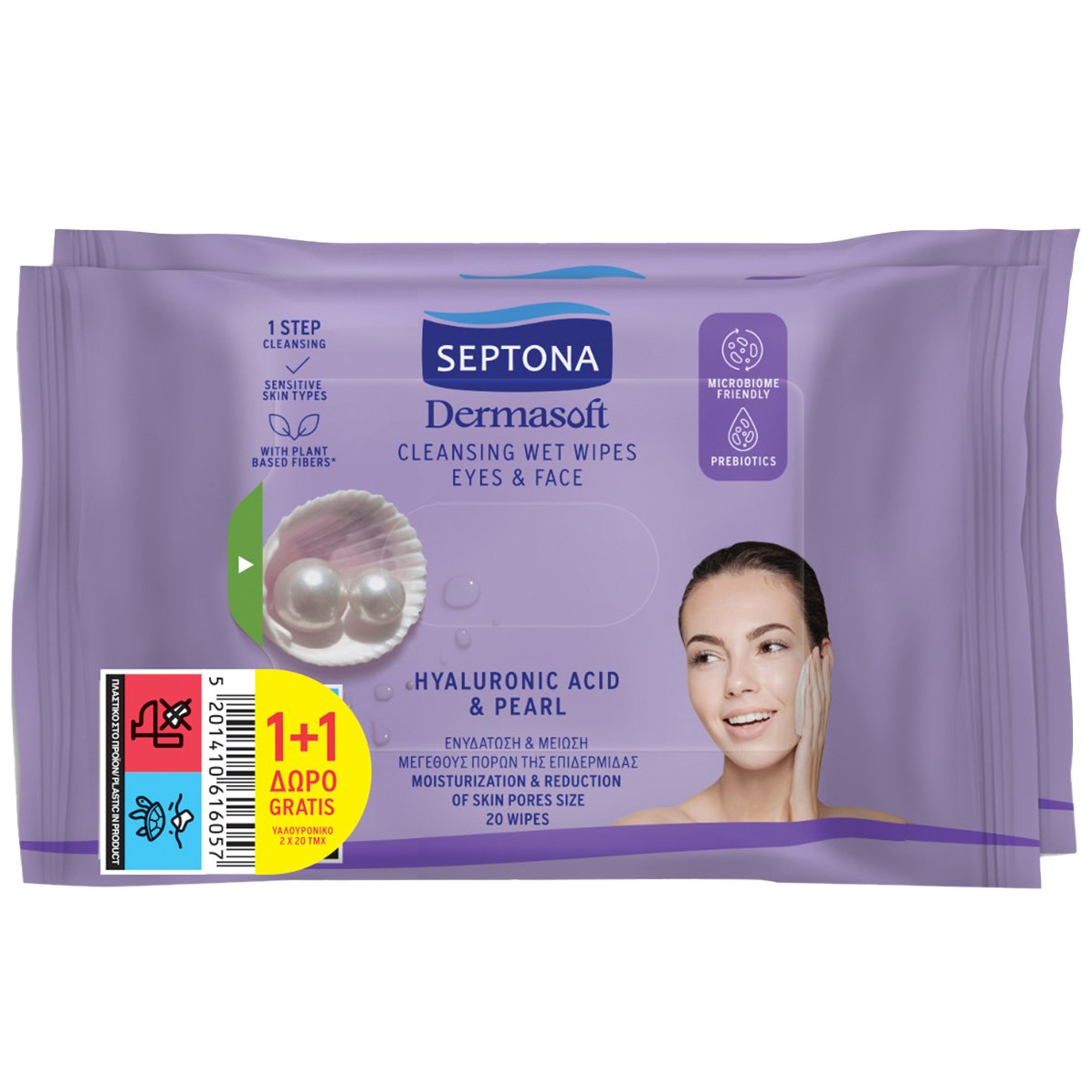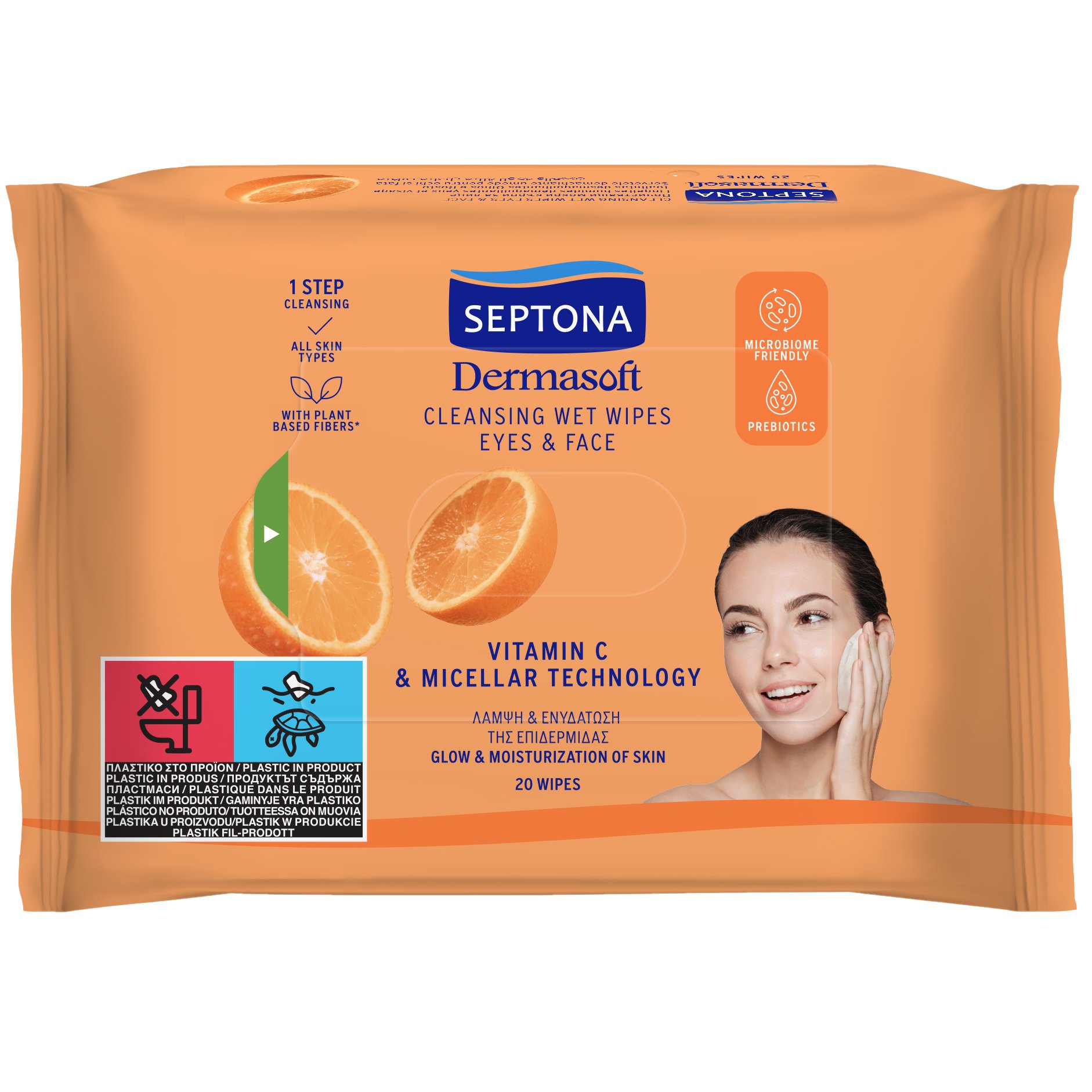 Septona Πακέτο Προσφοράς Dermasoft Cleansing Wet Wipes Μαντηλάκια Ντεμακιγιάζ Προσώπου, Ματιών με Βιταμίνη E για Όλους τους Τύπους Επιδερμίδας 40 Τεμάχια (2x20 Τεμάχια)