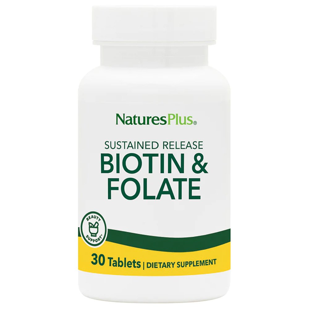 Natures Plus Biotin & Folic Acid Συμπλήρωμα Διατροφής για την Καλή Υγεία των Μαλλιών & του Δέρματος 30tabs