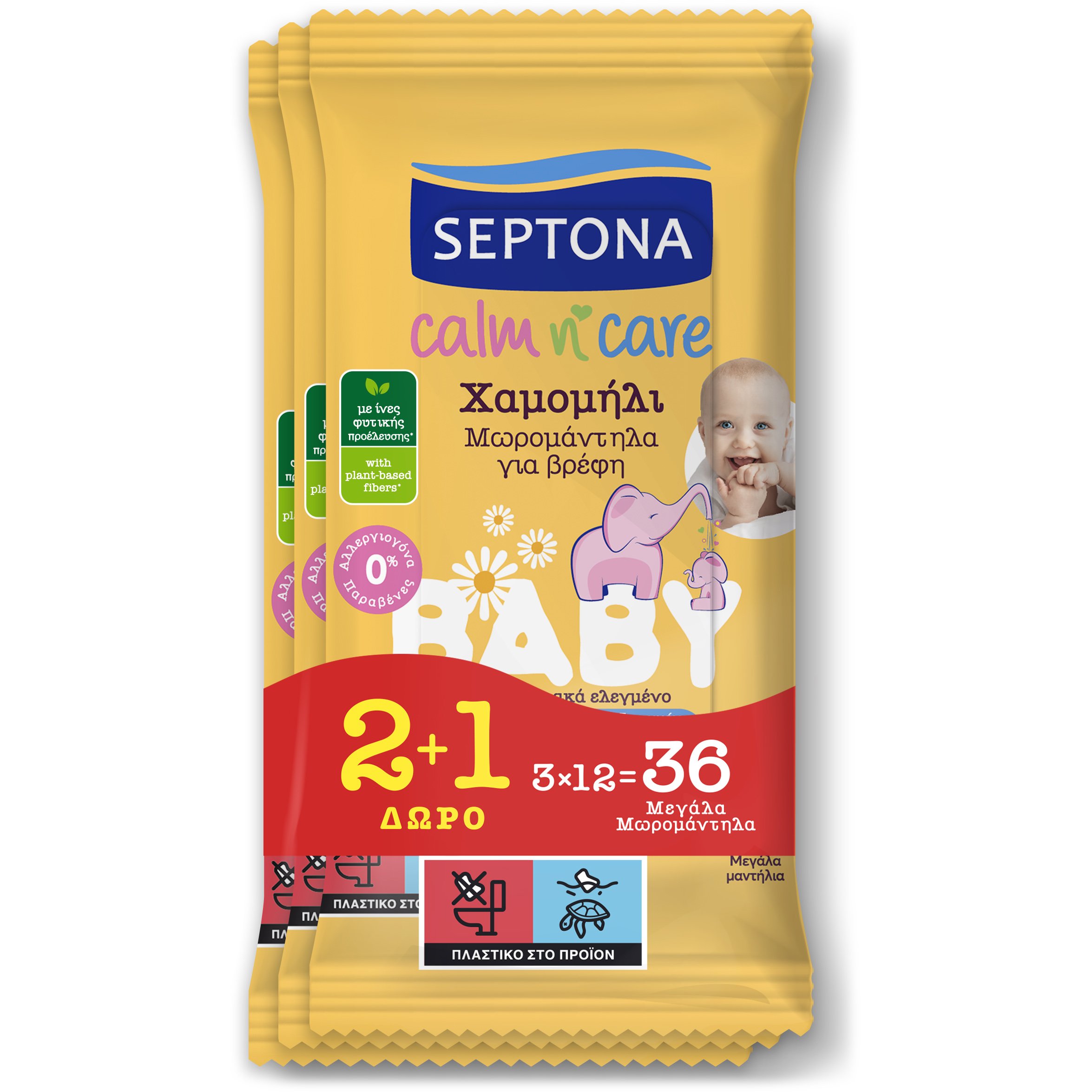 BabyCare Chamomile Pure Water Wipes Mini Pack Μωρομάντηλα με Ίνες Φυτικής Προέλευσης & Εκχύλισμα Χαμομηλιού, Ιδανικά για Ευαίσθη
