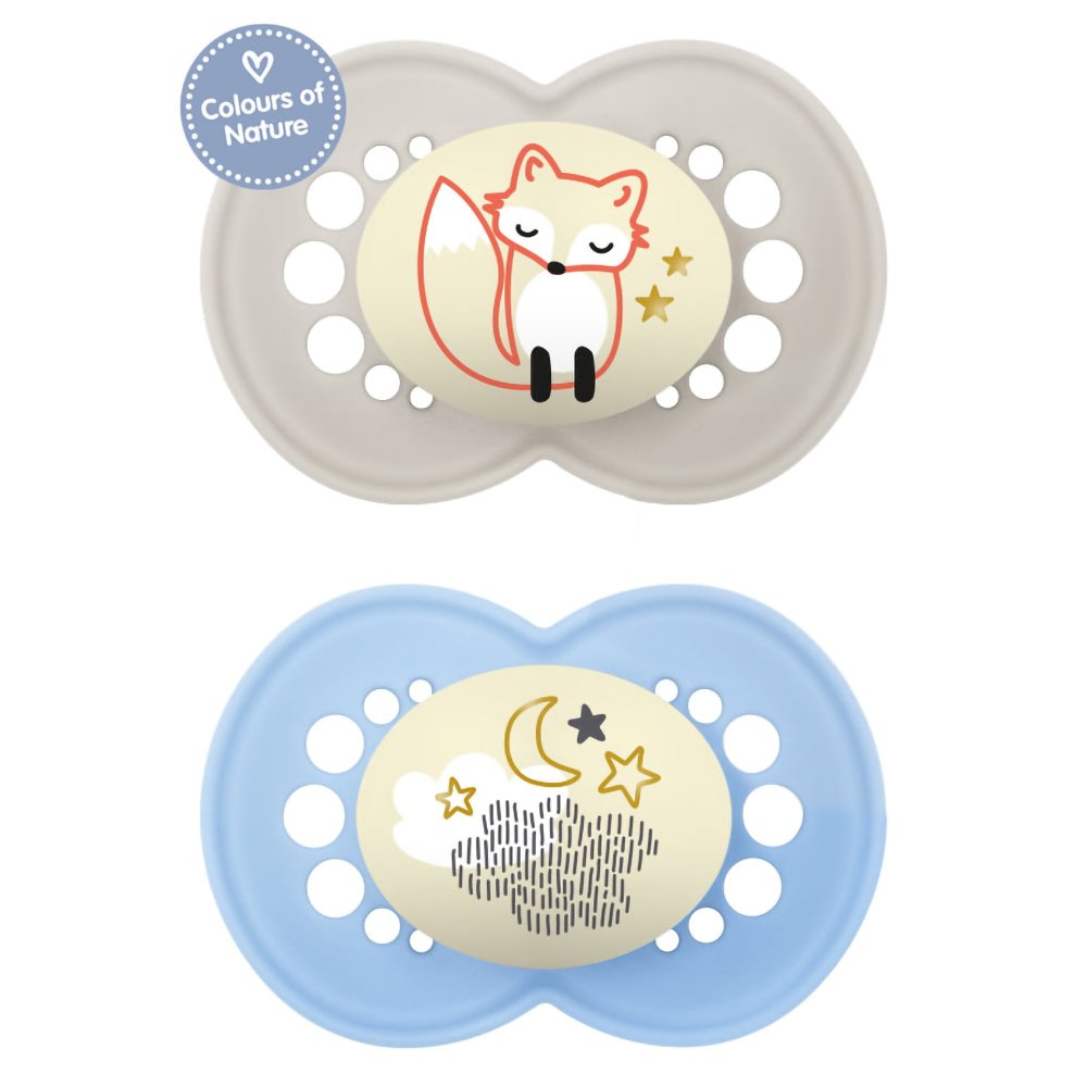 Mam Day & Night Forest Κωδ 174S 6-16m Ορθοδοντική Πιπίλα Σιλικόνης που Λάμπει στο Σκοτάδι από 6 εώς 16 Μηνών 2 Τεμάχια - Κρεμ/ Γκρι