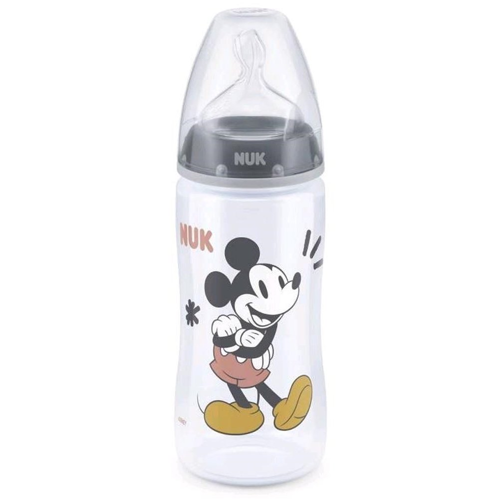 Nuk Disney Mickey Mouse First Choice Plus 6-18m 10.741.034 Πλαστικό Μπιμπερό με Δείκτη Ελέγχου Θερμοκρασίας & Θηλή Σιλικόνης Προσαρμοσμένη στο Σχήμα της Γνάθου 300ml - Γκρι