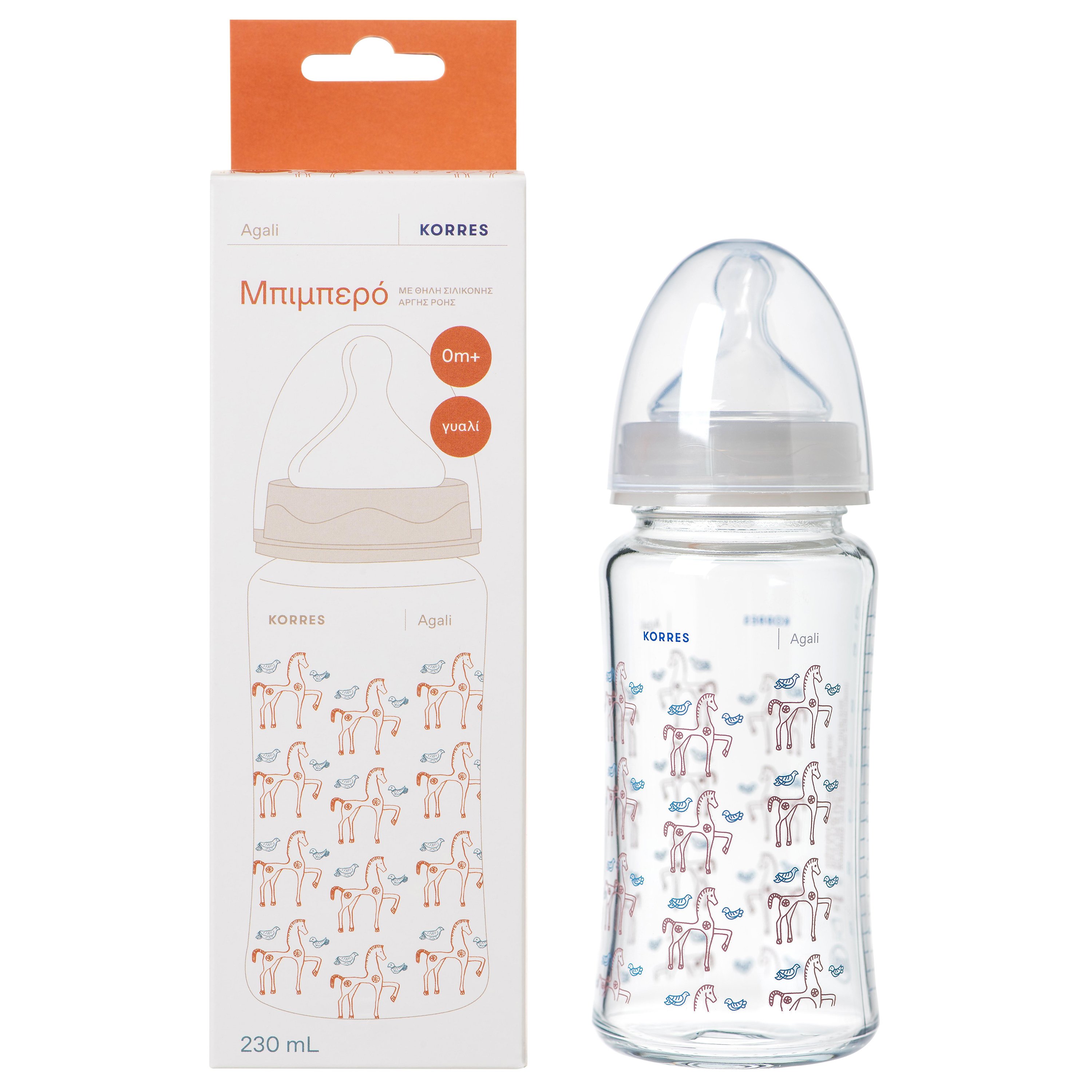 Korres Feeding Bottle from 0m+ Γυάλινο Μπιμπερό με Θηλή Σιλικόνης Χαμηλής Ροής για Βρέφη Από τη Γέννηση 230ml