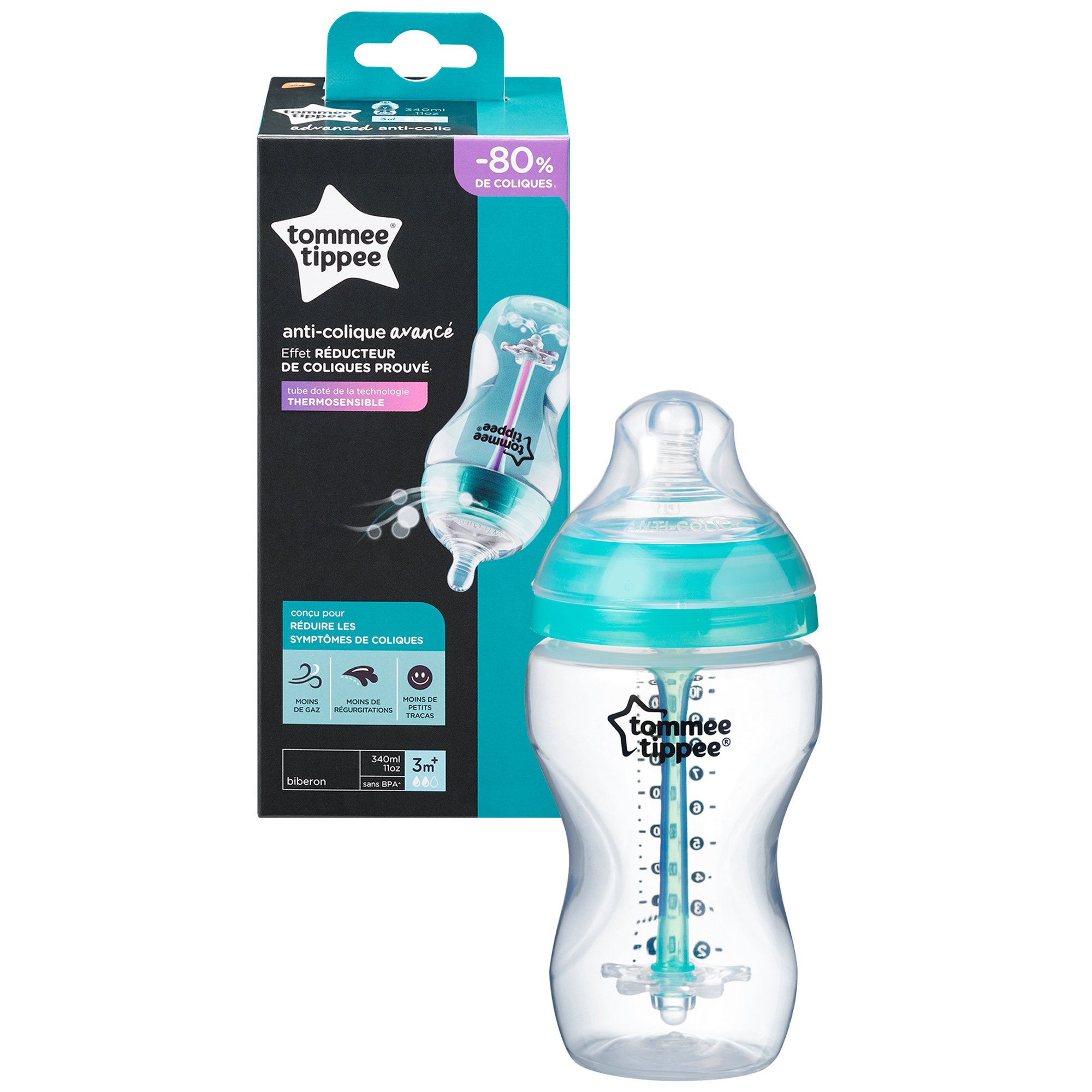 Tommee Tippee Closer to Nature PP Baby Bottle 3m+ Κωδ 42260185 Μπιμπερό Πολυπροπυλενίου Μέτριας Ροής με Θηλή Σιλικόνης, Κατά των Κολικών 340ml