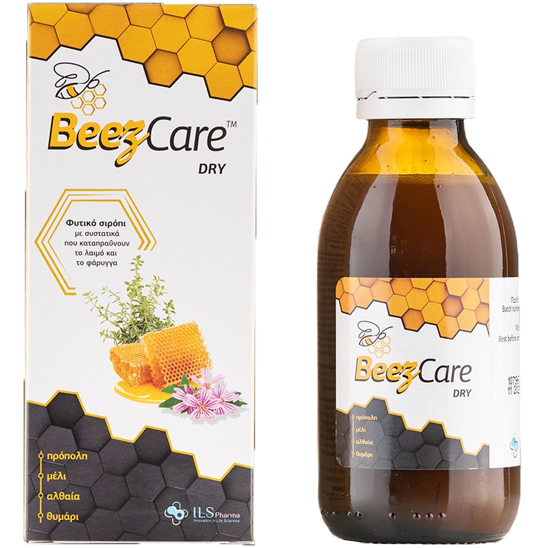 Beezcare Dry Natural Syrup Συμπλήρωμα Διατροφής Φυτικό Σιρόπι με Καταπραϋντικές Ιδιότητες για Λαιμό & Φάρυγγα για Ξηρό Βήχα 140ml