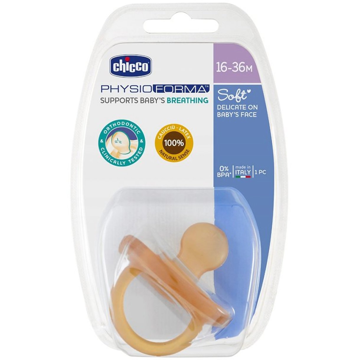 Chicco Physio Forma Soft Orthodontic Soother 16-36m, Ορθοδοντική Πιπίλα Καουτσούκ για Ηλικίες 16-36 Μηνών 1 Τεμάχιο