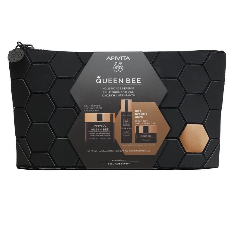 Apivita Set Queen Bee Κρέμα Ημέρας Πλούσιας Υφής 50ml & Δώρο Queen Bee Κρέμα Ματιών Ολιστικής Αντιγήρανσης 15ml & Δώρο Νεσεσέρ