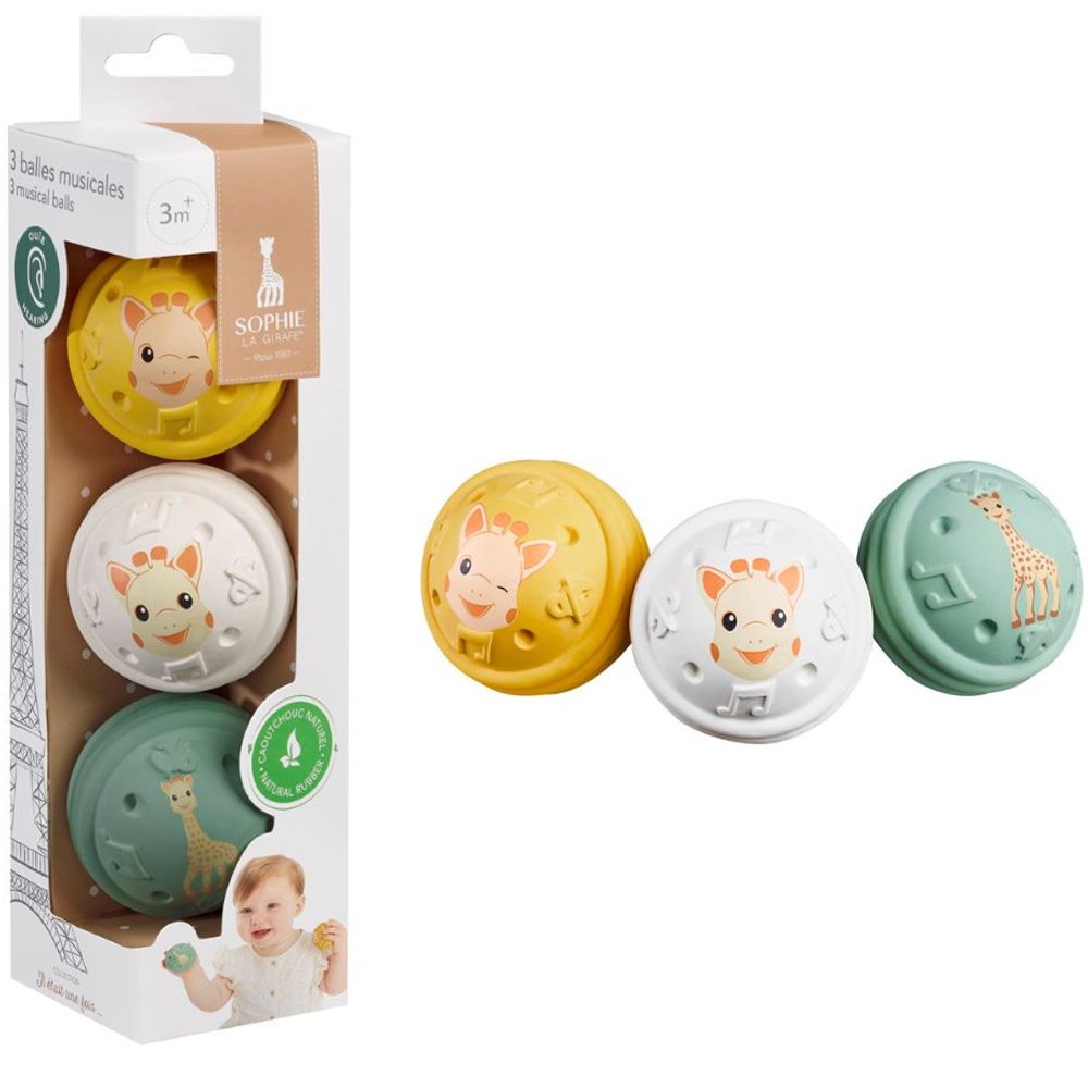 Sophie La Girafe 3 Music Balls 3m+, 1 Τεμάχιο, Κωδ 010504,3 Μουσικές Μπαλίτσες από 100% Φυσικό Καουτσούκ που Διεγείρουν & τις 5 Αισθήσεις του Μωρού