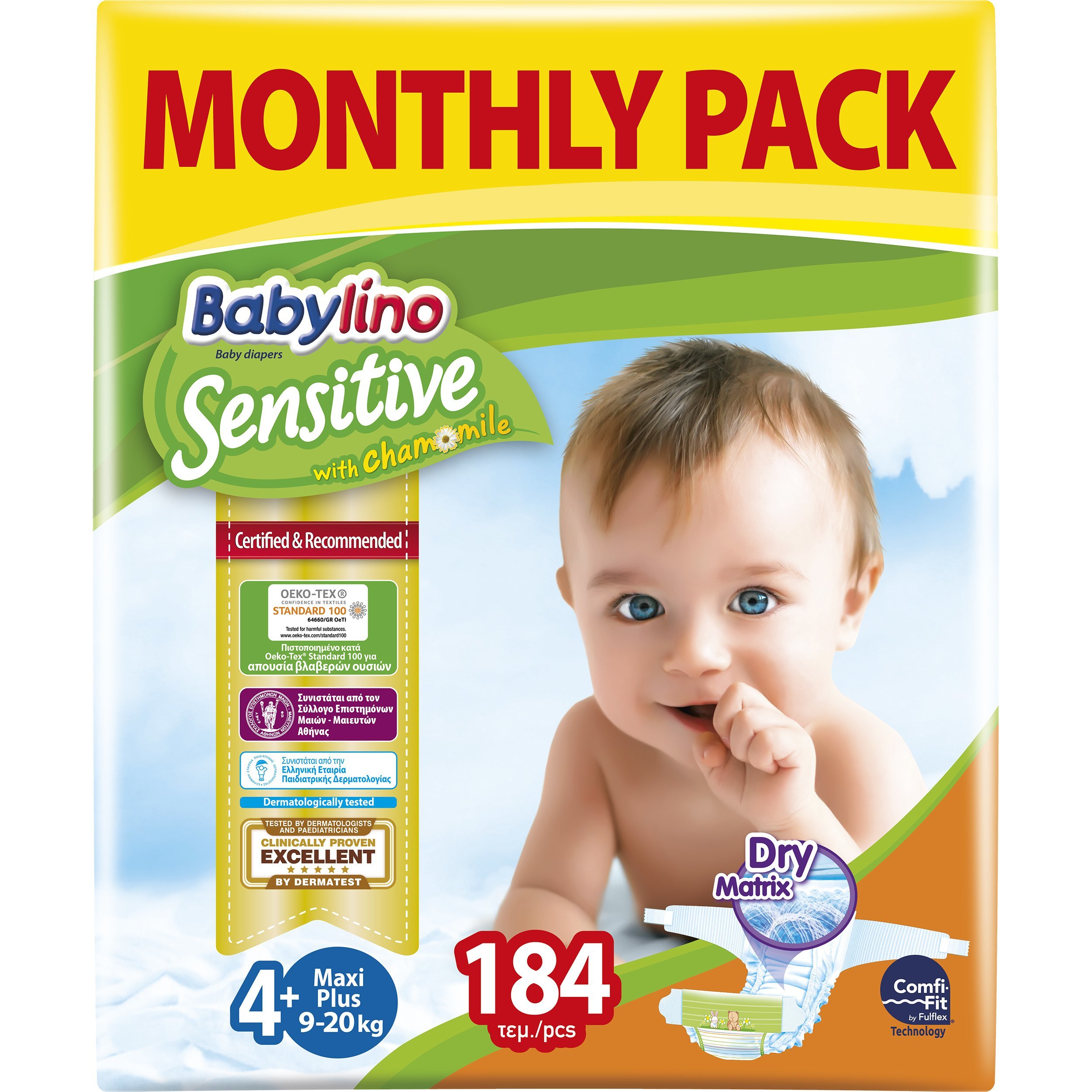Babylino Sensitive Monthly Pack Maxi Plus Νο4+ (9-20kg) Βρεφικές Πάνες 184 τεμάχια