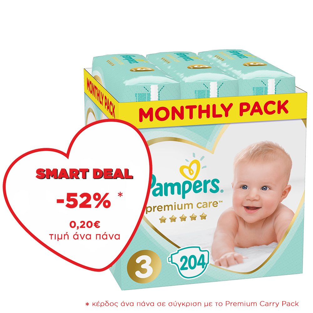 Pampers Premium Care Monthly Pack No3 (5-9kg) 204 πάνες
