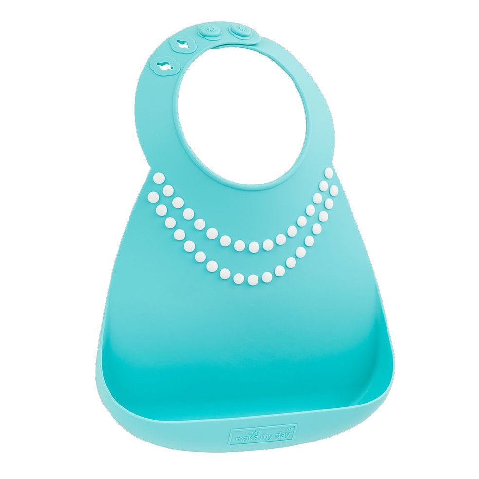 MakeMyDay Baby Bib Κωδ 70100 Σαλιάρα Σιλικόνης για Ηλικίες από 6 Μηνών 1 Τεμάχιο - Tiffany Blue W/Pearls