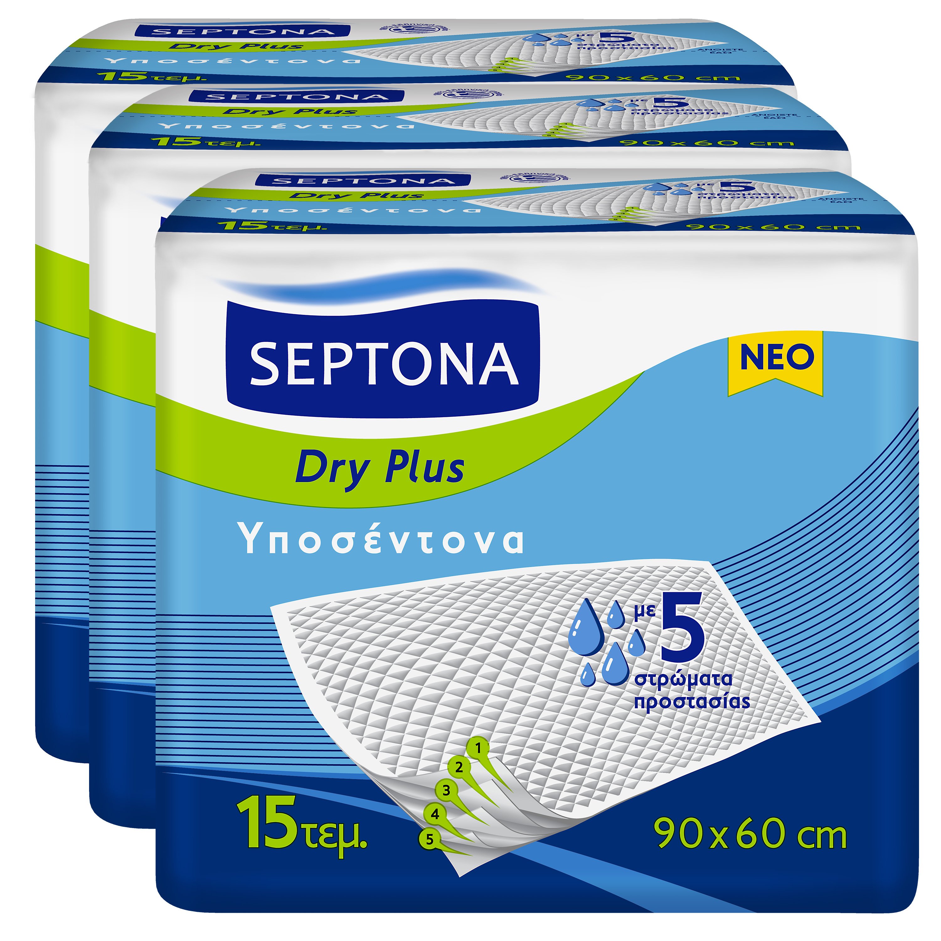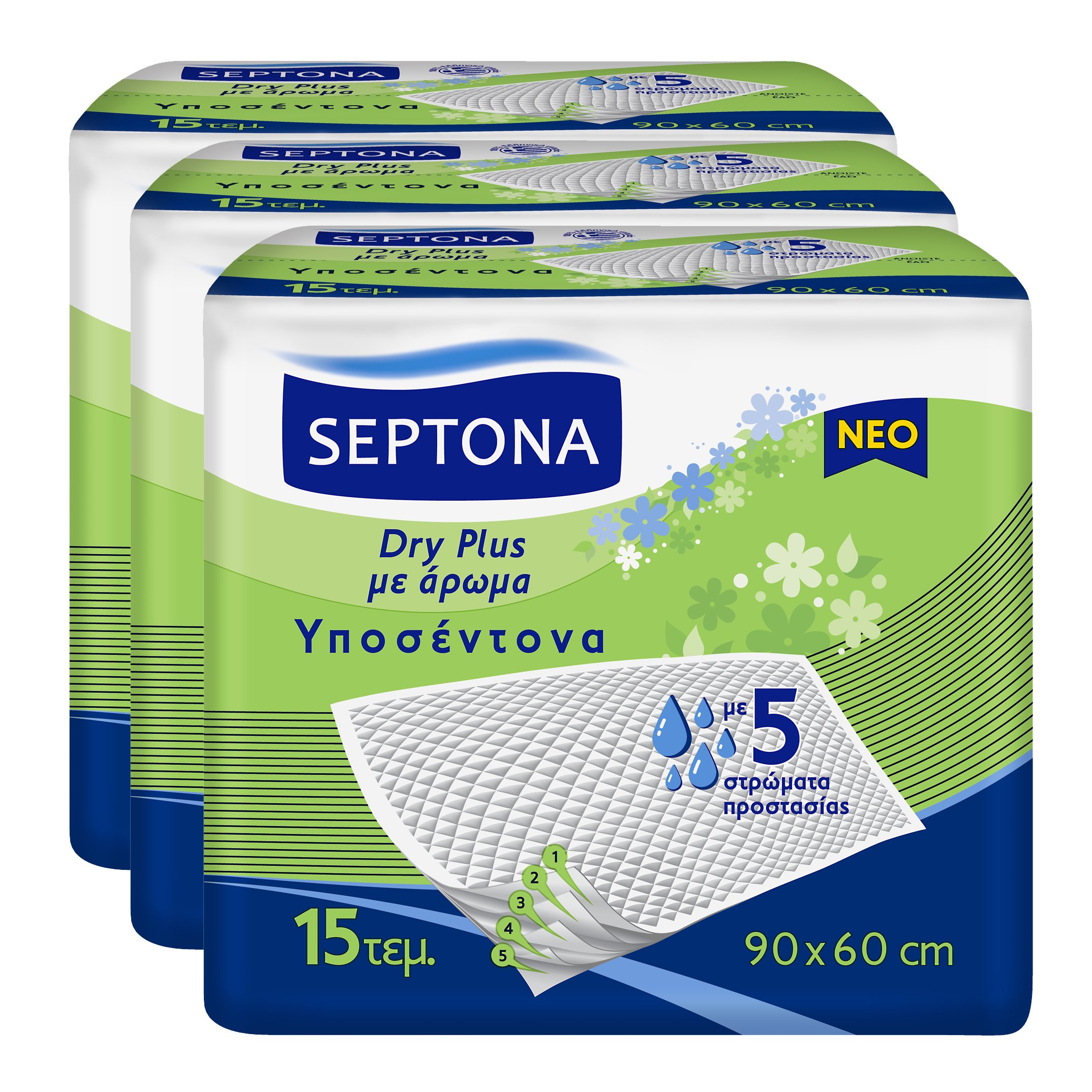 Septona Πακέτο Προσφοράς Dry PLus Υποσέντονα με Απαλό Άρωμα για Έλεγχο των Οσμών & 5 Στρώματα Προστασίας 90 x 60cm 45 Τεμάχια